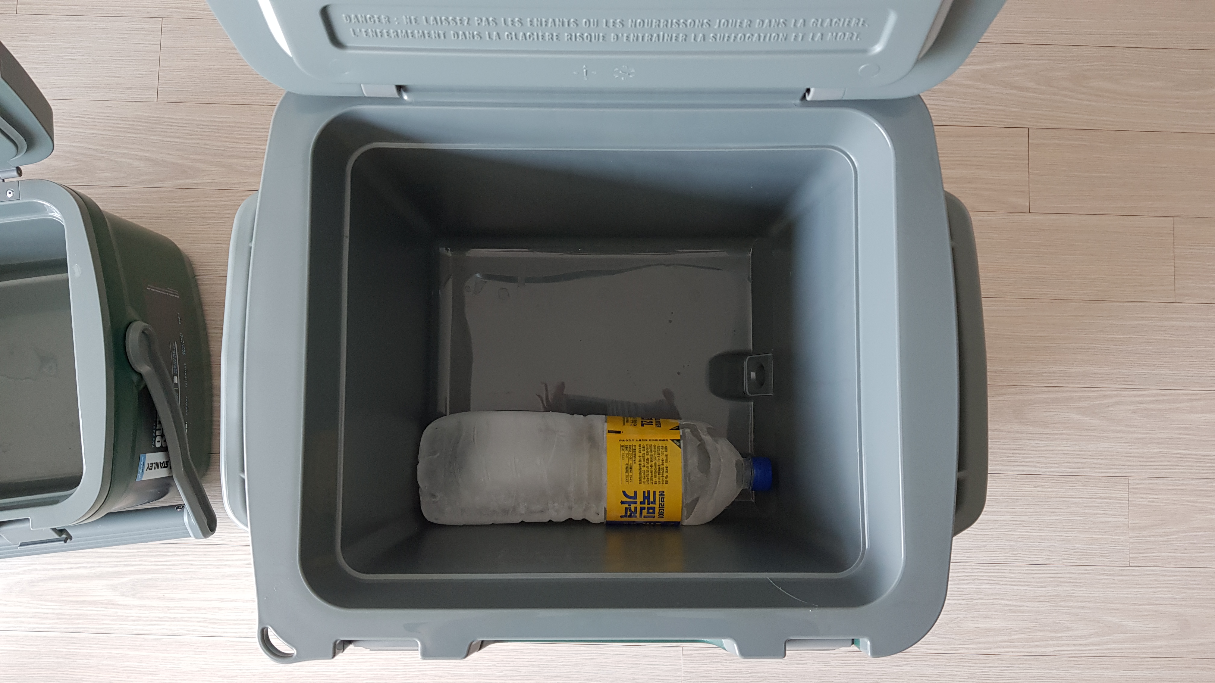 가장 일반적으로 냉매로 사용하는 2L 생수병을 가지고 확인해 본 결과입니다. 누여서 넣으면 2L기준으로 2개가 들어가며
