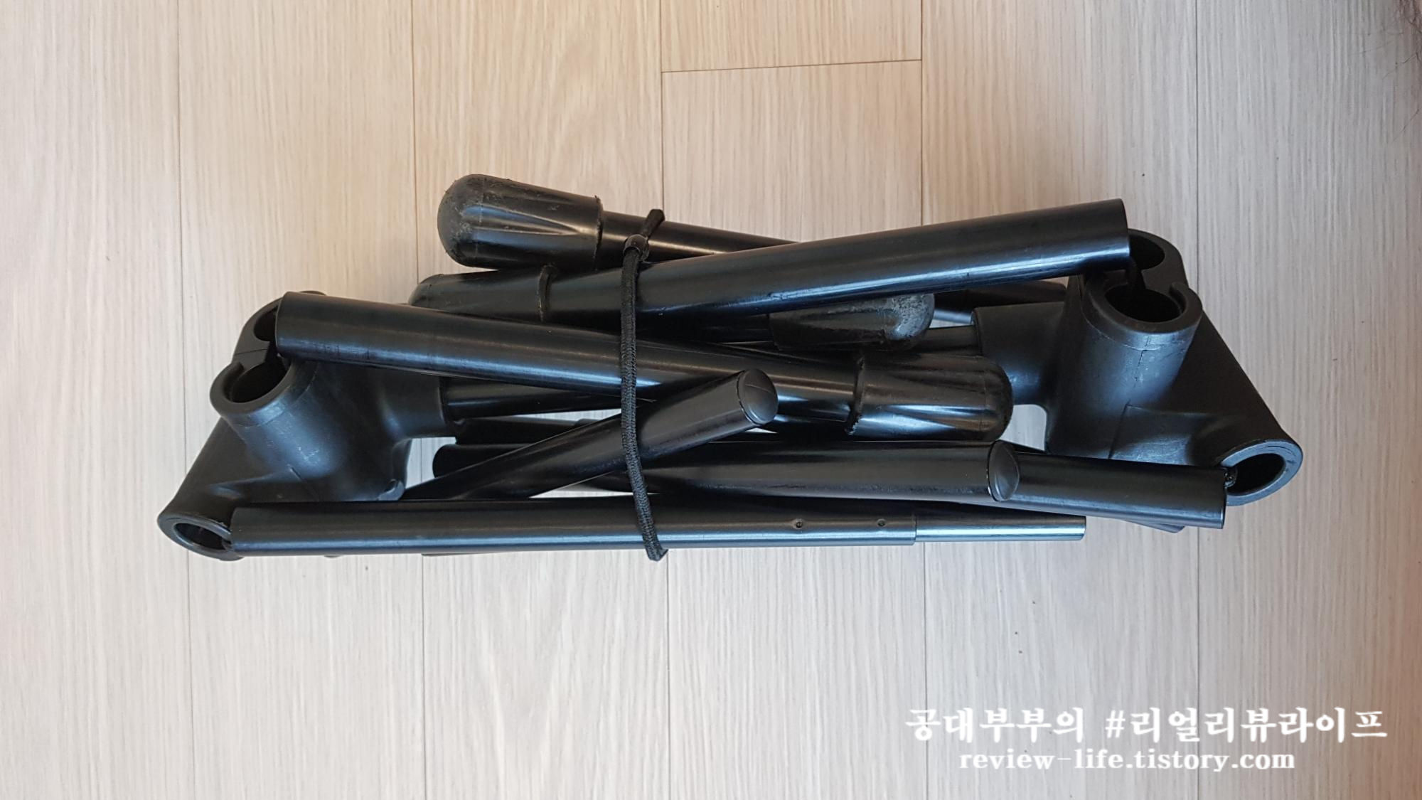 조립해야 한다는 번거로움이 있지만 가볍고, 튼튼하고(내하중 100Kg이상), 수납 부피가 작아 개인적으로는