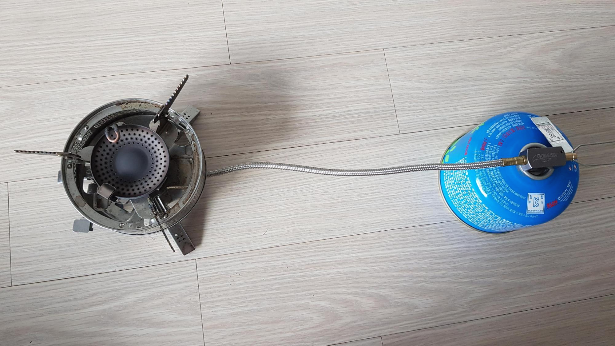 호스식 버너: 패킹 사이즈가 큰 편이고 무거우나 안정성이 괜찮으며 액출이 가능함