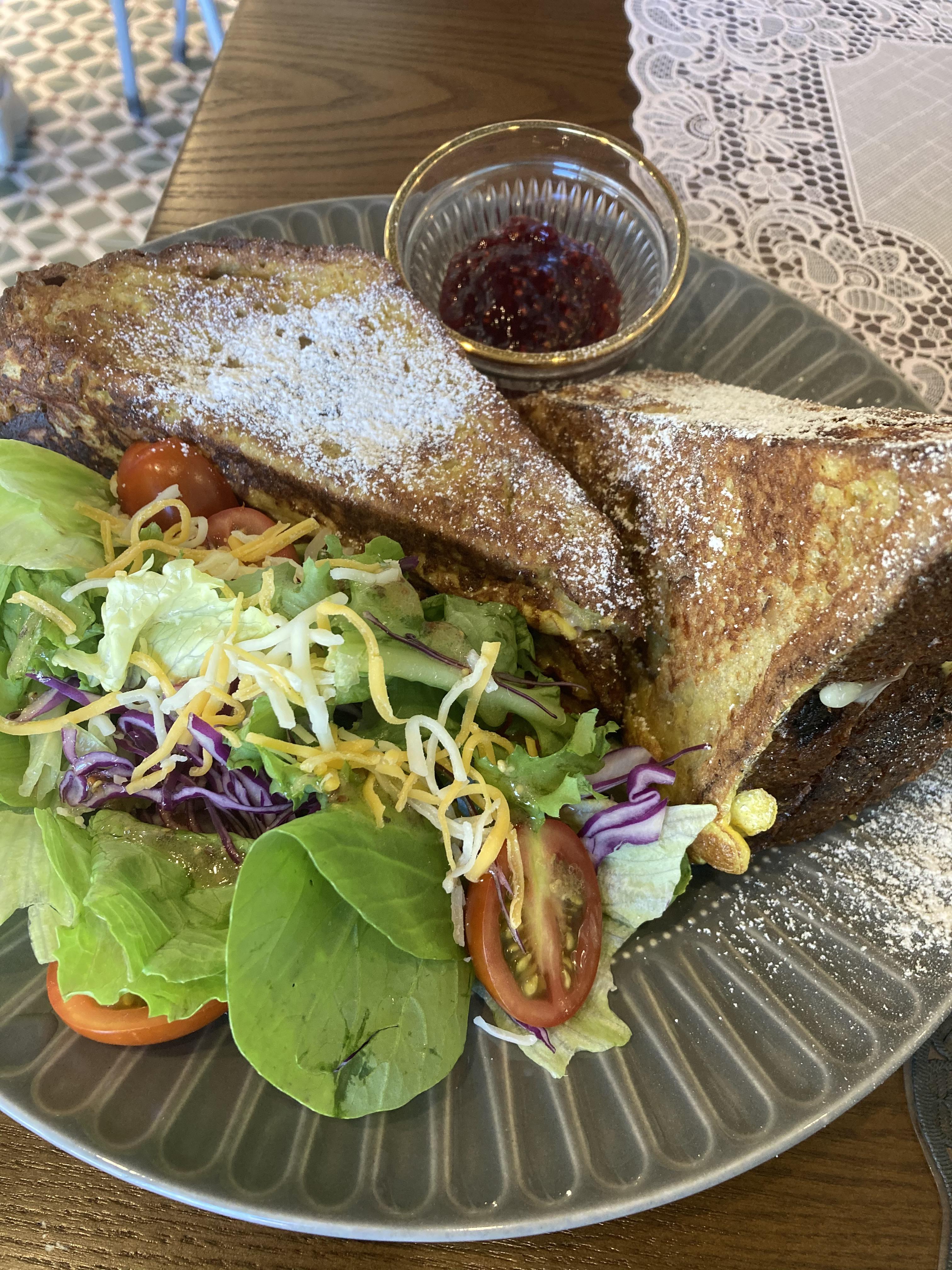 몬테크리스토는 식빵 세겹 사이에 치즈랑 햄이 있고 한번 더 계란을 겉에 묻혀 구운 메뉴